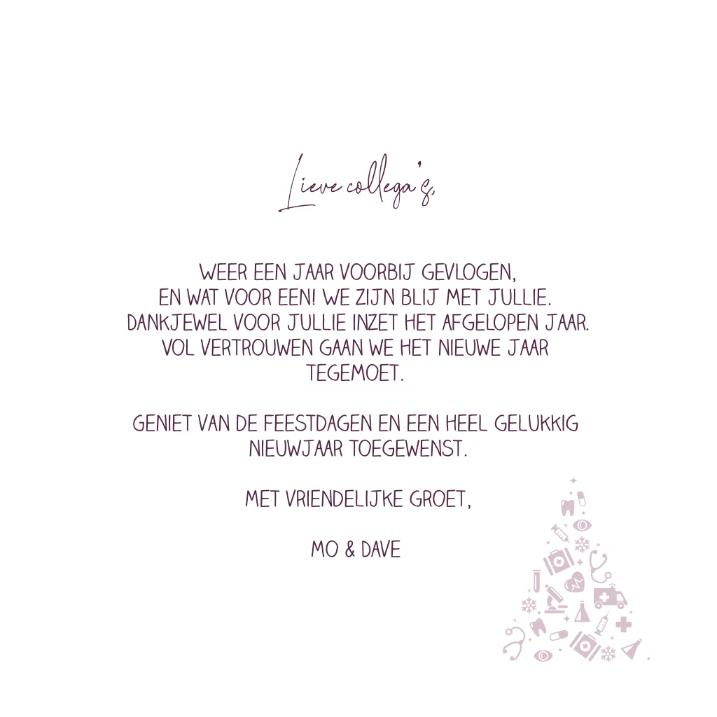 Een unieke kaart om te sturen naar zorgpersoneel. Op deze kaart is namelijk een kerstboom te zien die is gevuld met allerlei zorg icoontjes. Het goudfolie maakt het helemaal af!