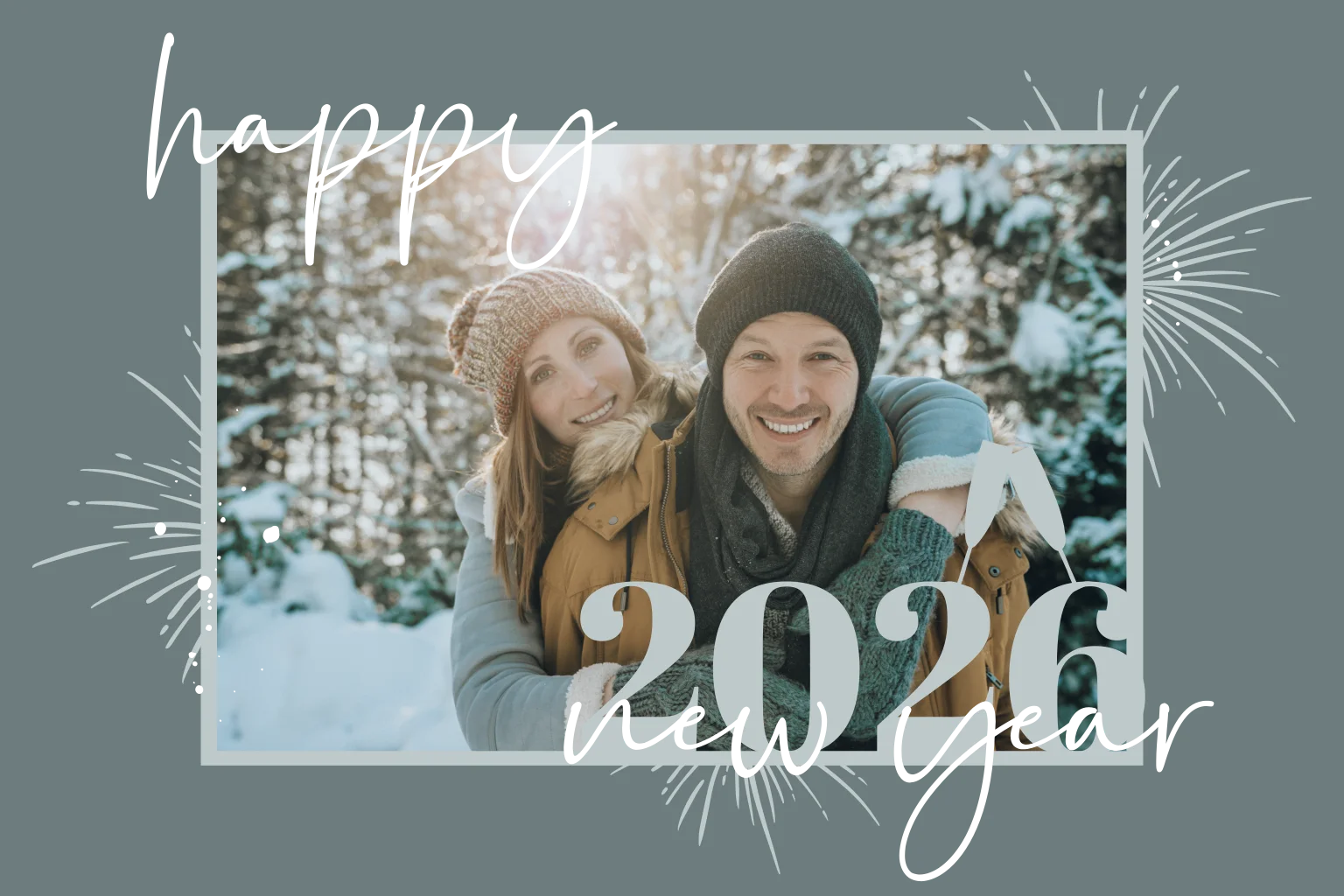 Nieuwjaarskaart vuurwerk met persoonlijke foto