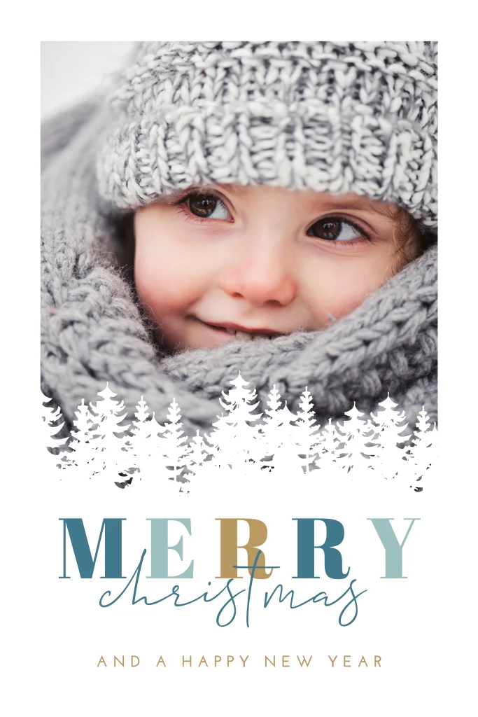 Vrolijke kerstkaart met kerstbomen en eigen foto