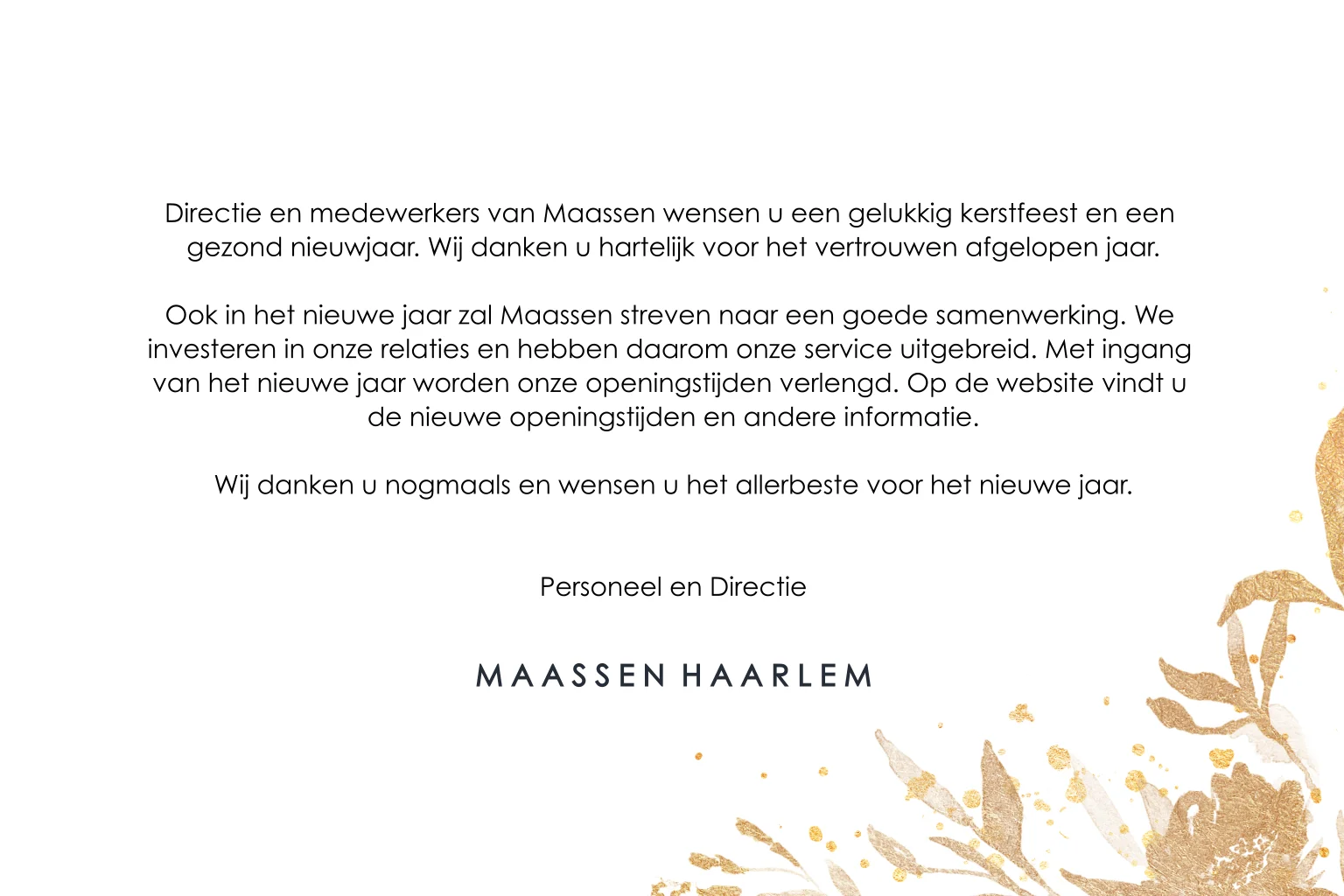 Stijlvolle zakelijke kerstkaart met goudlook bladeren
