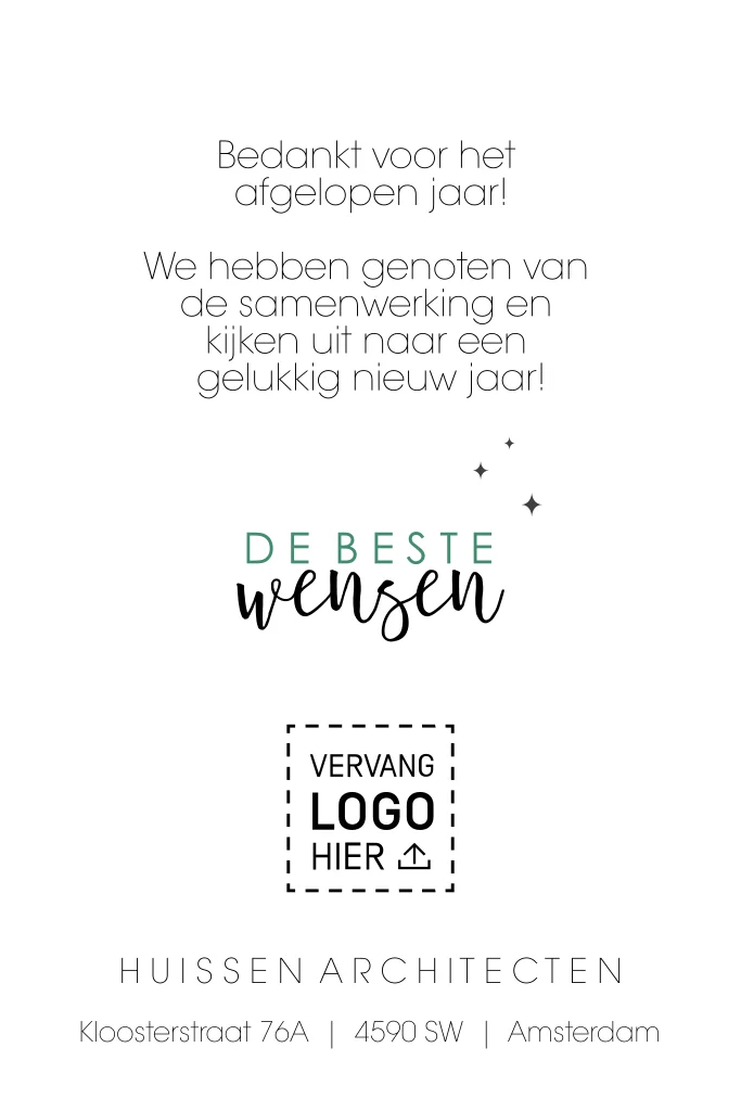 Voeg gemakkelijk en snel zelf het logo of een foto van jullie organisatie toe en maak de kaart persoonlijk met een eigen tekst.