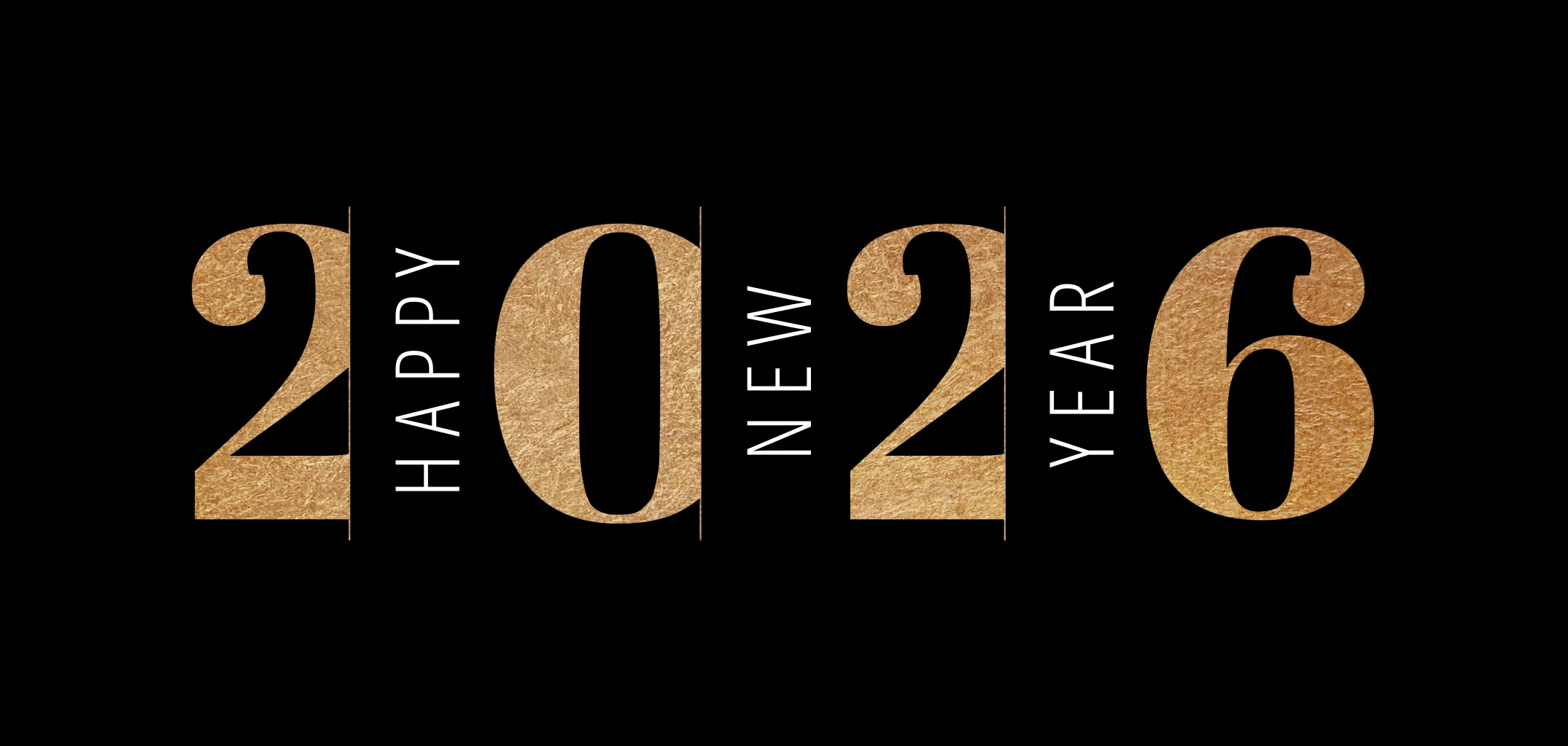 Stijlvolle nieuwjaarskaart met het jaartal in goudkleur.