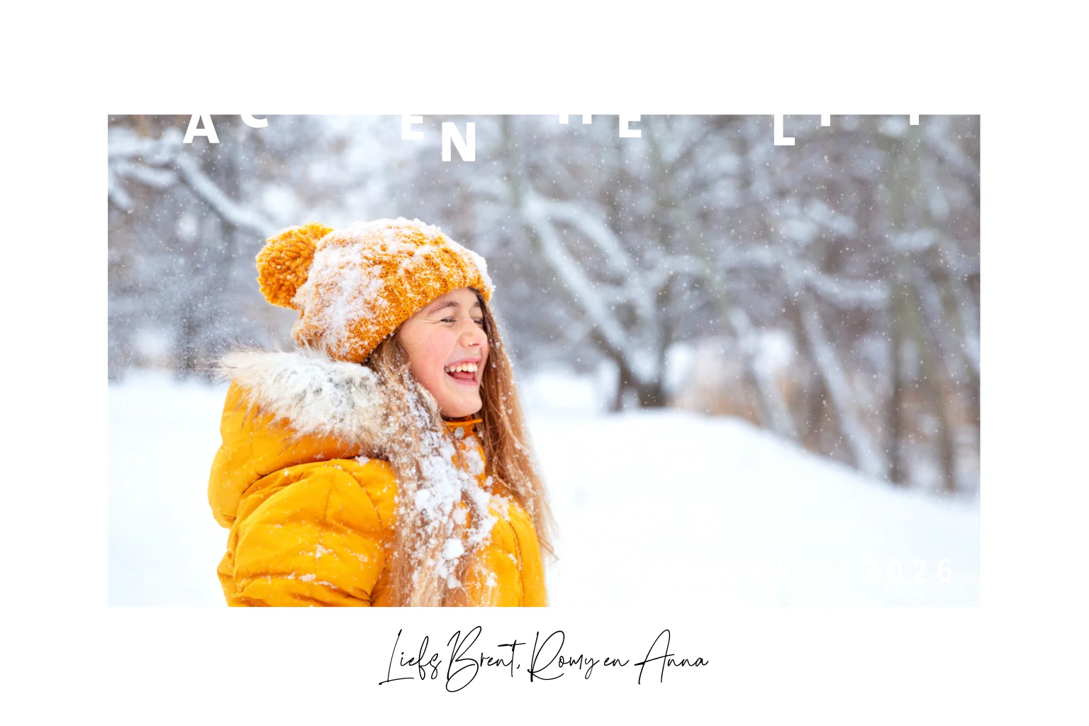 Vrolijke persoonlijke kerstkaart met ruimte voor eigen foto. De goudfolie elementen én de ronde hoeken maken het kaartje extra bijzonder!