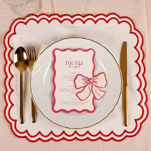 Deze super trendy menukaart met golvende randen maakt de kerst tafelsetting helemaal af!