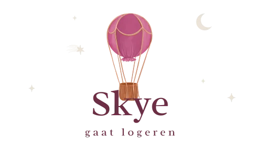 Logeerkoffertje met naam en roze luchtballon in sterrenhemel