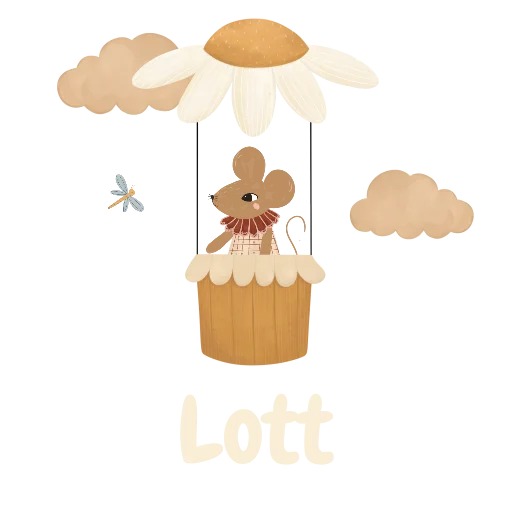 Reistrolley met naam en muisje in luchtballon