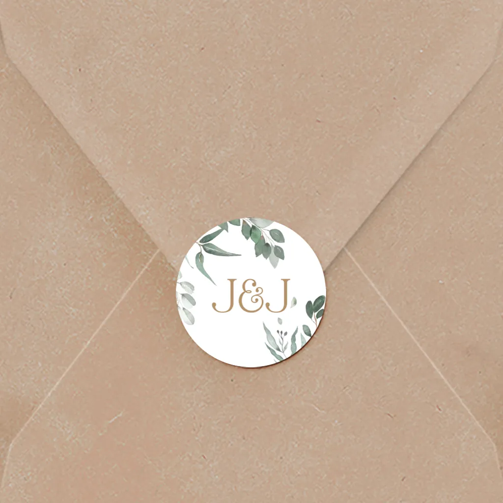 Versier de envelop met deze botanische sticker met initialen. Tip! Je kunt de sticker ook nog bewerken in onze editor.