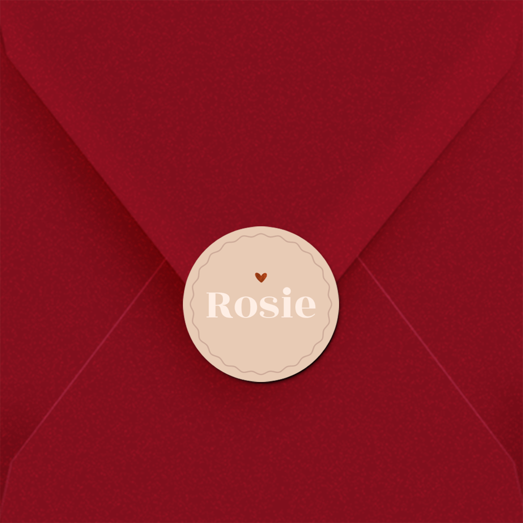 Versier de envelop met deze beige sticker met golvende rand. Tip! Je kunt de sticker ook nog bewerken in onze editor.