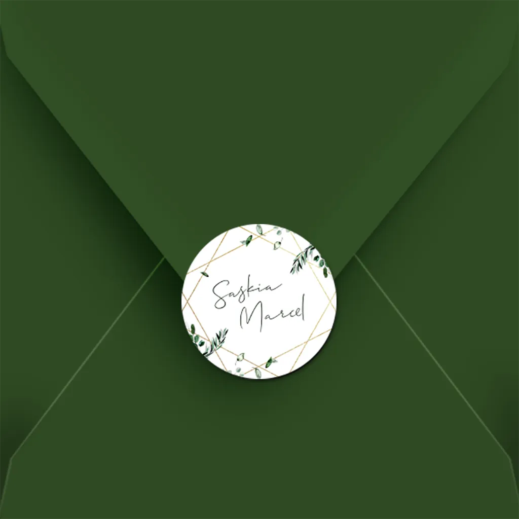 Versier de envelop met deze botanische sticker. Tip! Je kunt de sticker ook nog bewerken in onze editor.