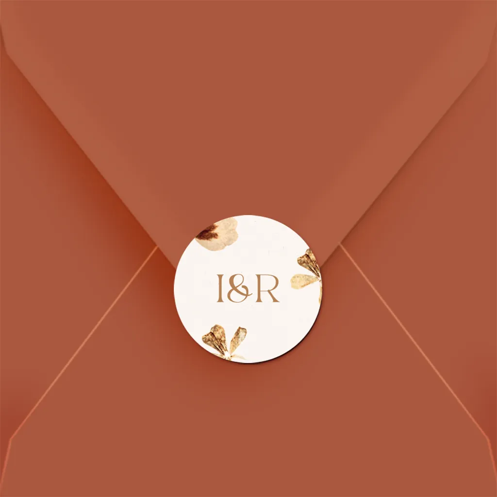 Versier de envelop met deze beige sticker met droogbloemen. Tip! Je kunt de sticker ook nog bewerken in onze editor.