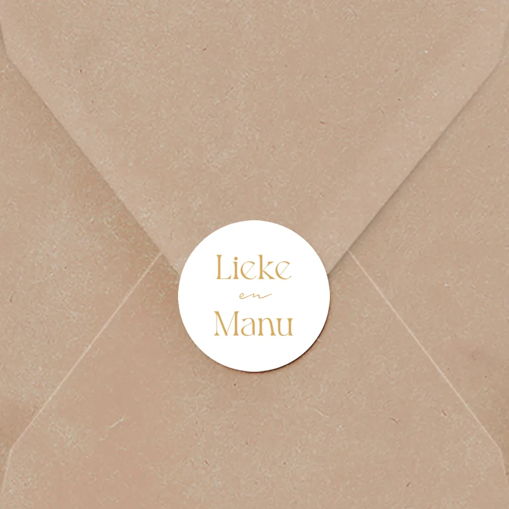 Versier de envelop met deze sticker met goudkleurige typografie. Tip! Je kunt de sticker ook nog bewerken in onze editor.