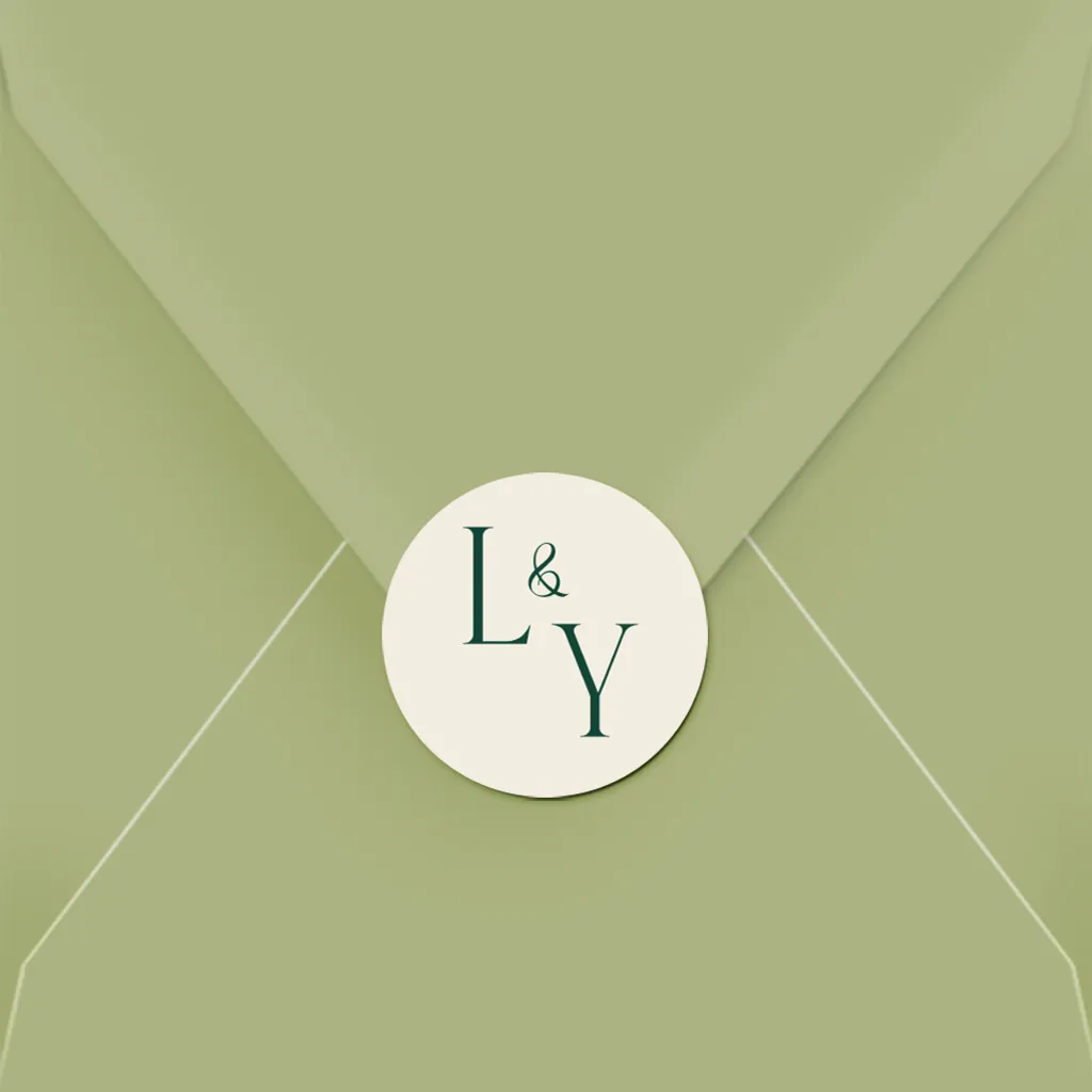 Versier de envelop met deze beige sticker met groene initialen. Tip! Je kunt de sticker ook nog bewerken in onze editor.