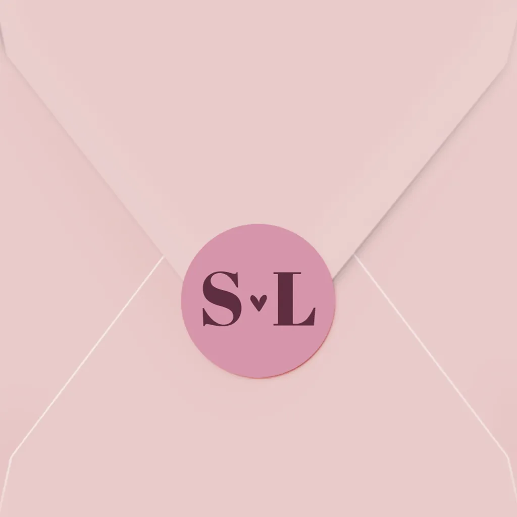 Versier de envelop met deze sticker in roze en rood met initialen. Tip! Je kunt de sticker ook nog bewerken in onze editor.
