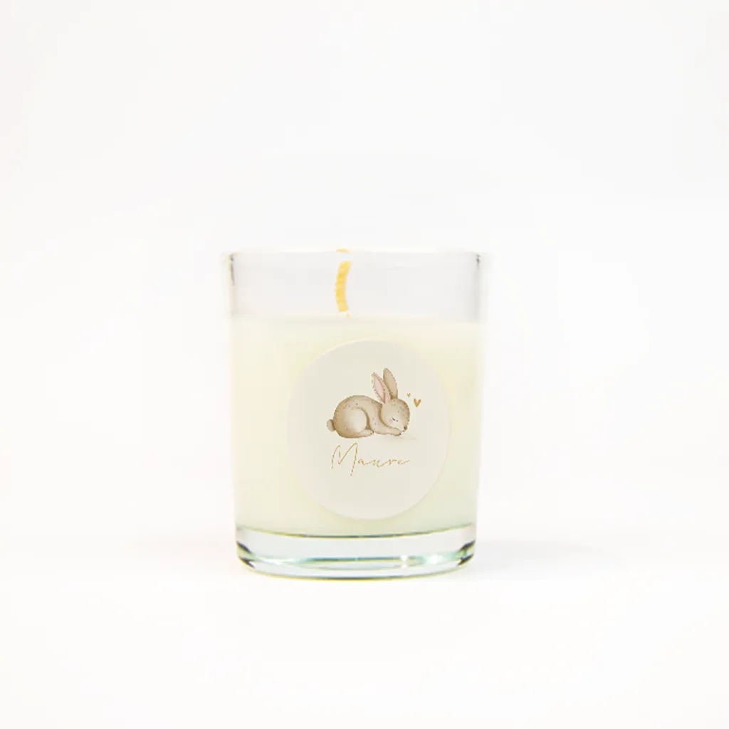 Maak een feestje van het geboortekaartje met deze bijpassende sluitsticker met lief konijntje! Je kunt de sticker zelf bewerken in onze editor.