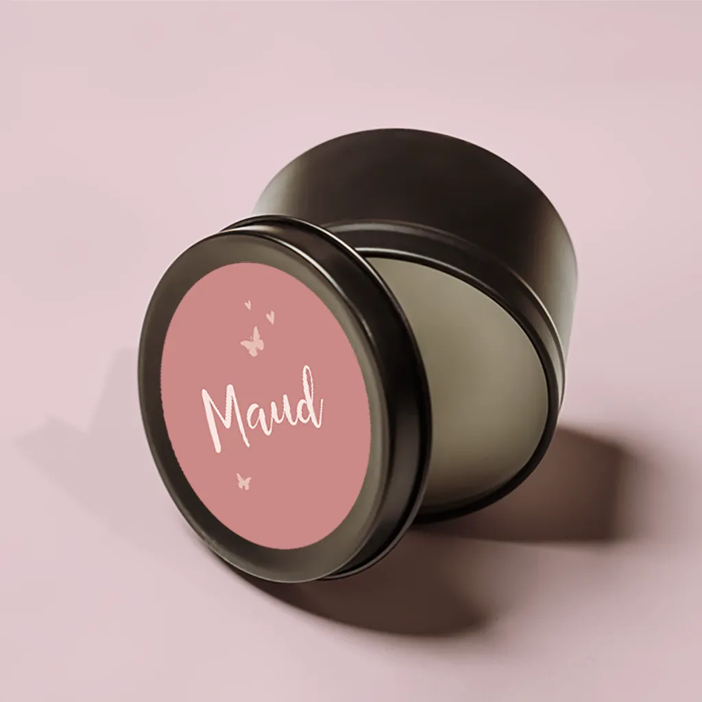 Naamsticker met oudroze achtergrond en vlinders en hartjes