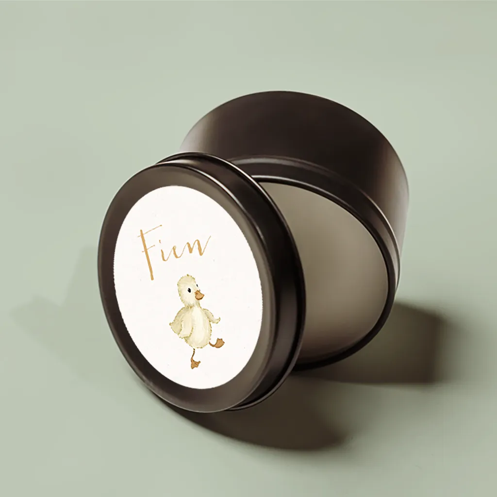 Maak een feestje van het geboortekaartje met deze bijpassende sluitsticker met schattig eendje! Je kunt de sticker zelf bewerken in onze editor.
