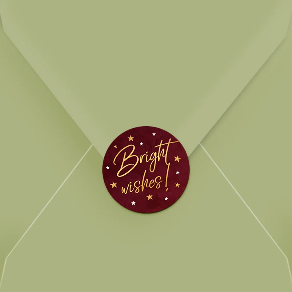 Maak van de kerstkaart een feestje op de deurmat met een gekleurde envelop in combinatie met een bijpassende sluitsticker. Tip! Je kunt elementen van je kaart kopiëren en plakken naar de sticker. Open de kaart in de editor in het ene tabblad en de sticker in het andere tabblad. Nu kun je onderling kopiëren en plakken en de sticker bij de kaart matchen.