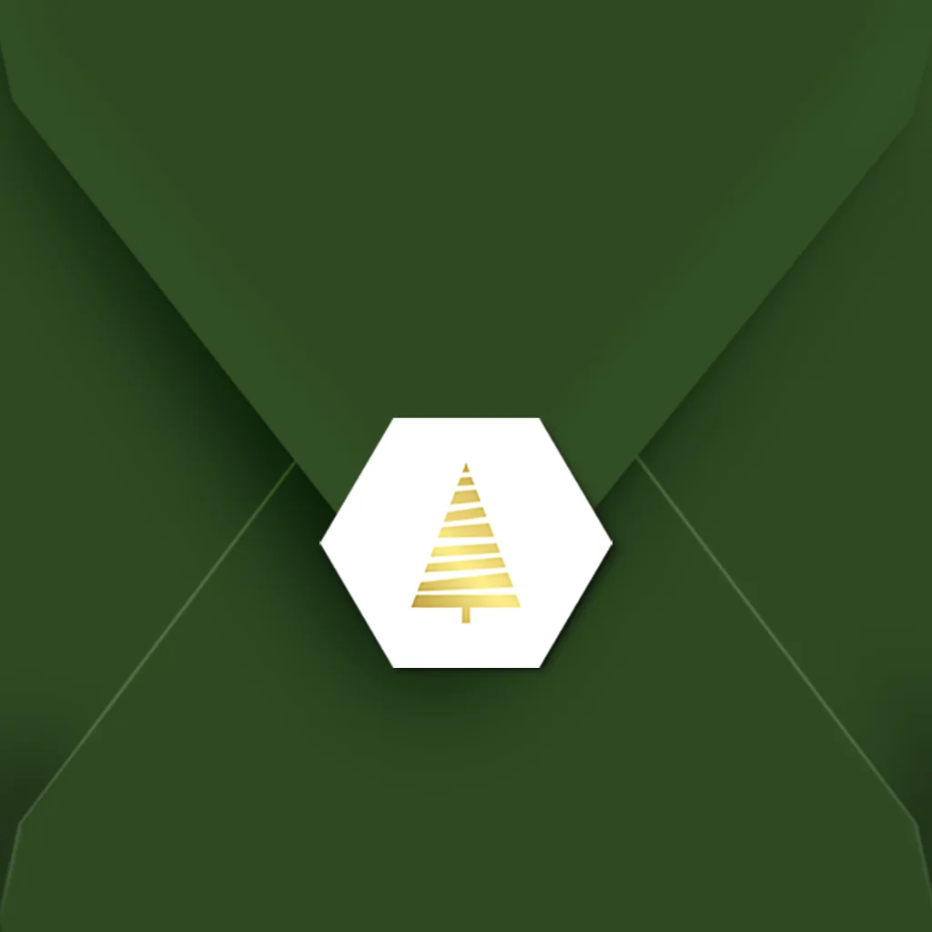 Maak van de kerstkaart een feestje op de deurmat met een gekleurde envelop in combinatie met een bijpassende sluitsticker. Deze sluitsticker is extra feestelijk door het luxe folie. Tip! Je kunt de sticker evt. nog bewerken in onze editor.