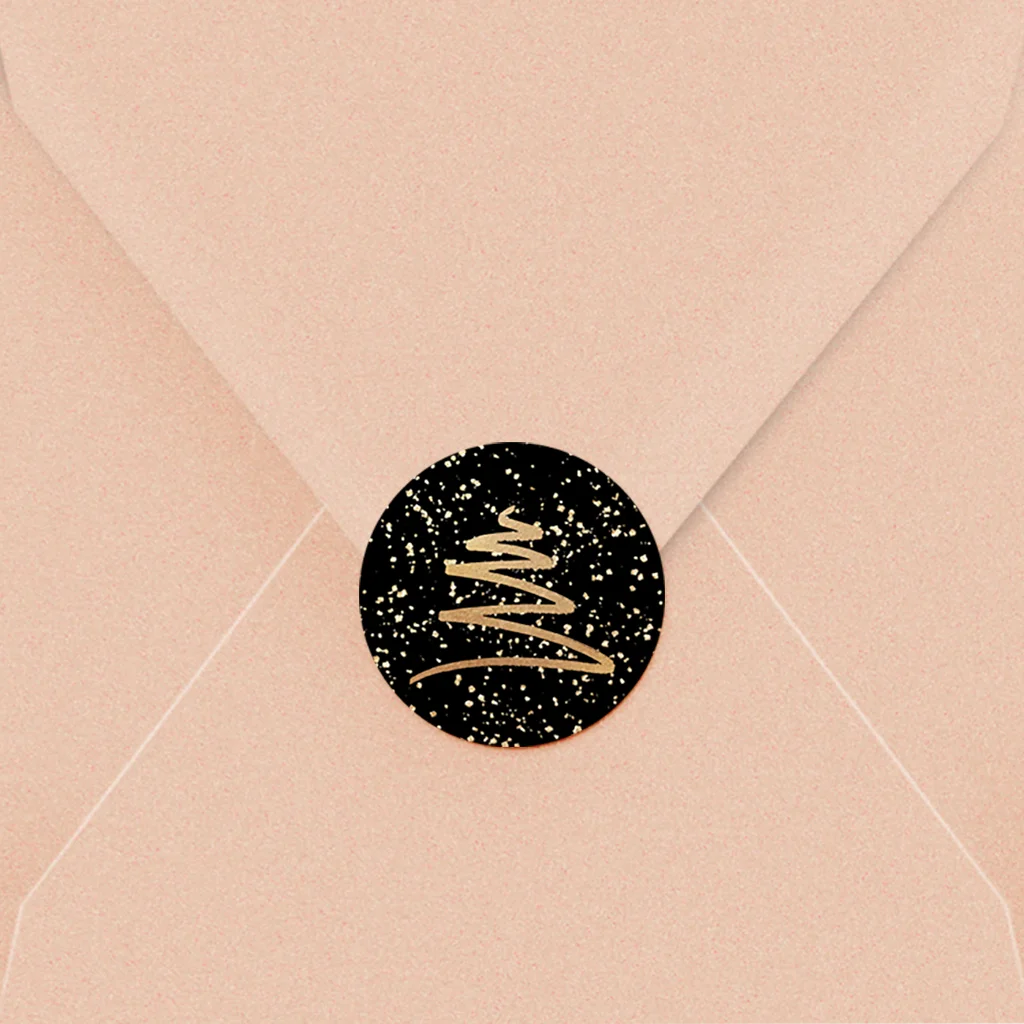 Sluitsticker kerstboom goudkleur en spetters 25 stuks