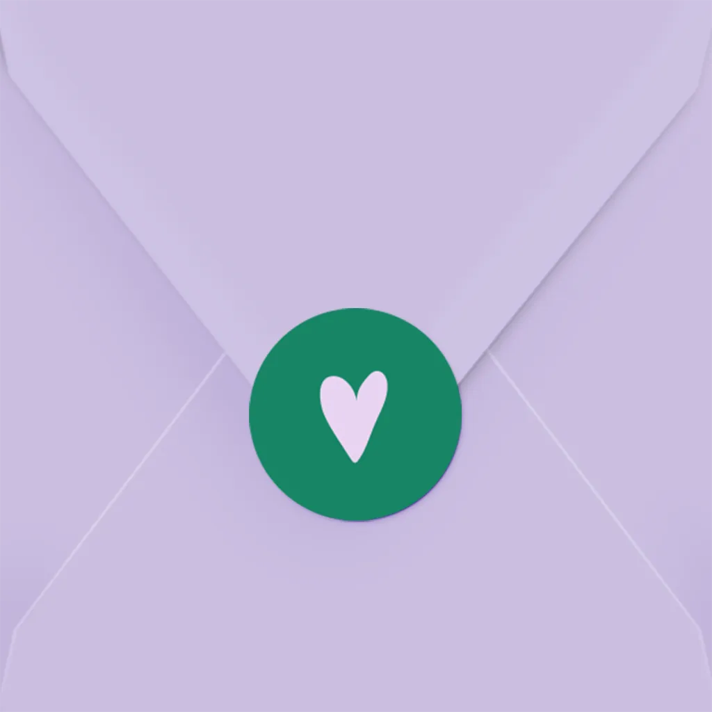 Sluitsticker in trendy colorblocking stijl in groen en lila