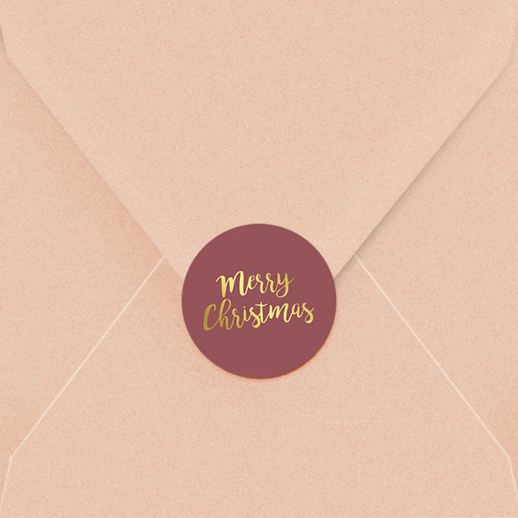 Kerst sluitsticker met 'merry christmas' in goudfolie