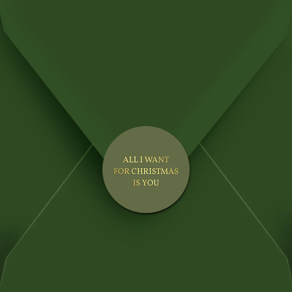Maak van de kerstkaart een feestje op de deurmat met een gekleurde envelop in combinatie met een bijpassende sluitsticker. Deze sluitsticker is extra feestelijk door het luxe folie. Tip! Je kunt de sticker evt. nog bewerken in onze editor.