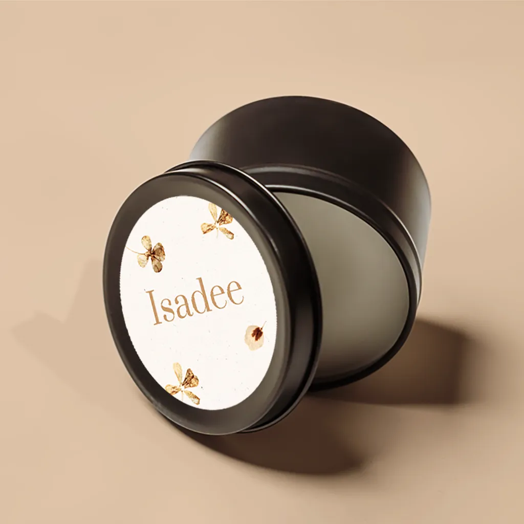 Stijlvolle naamsticker met droogbloemen