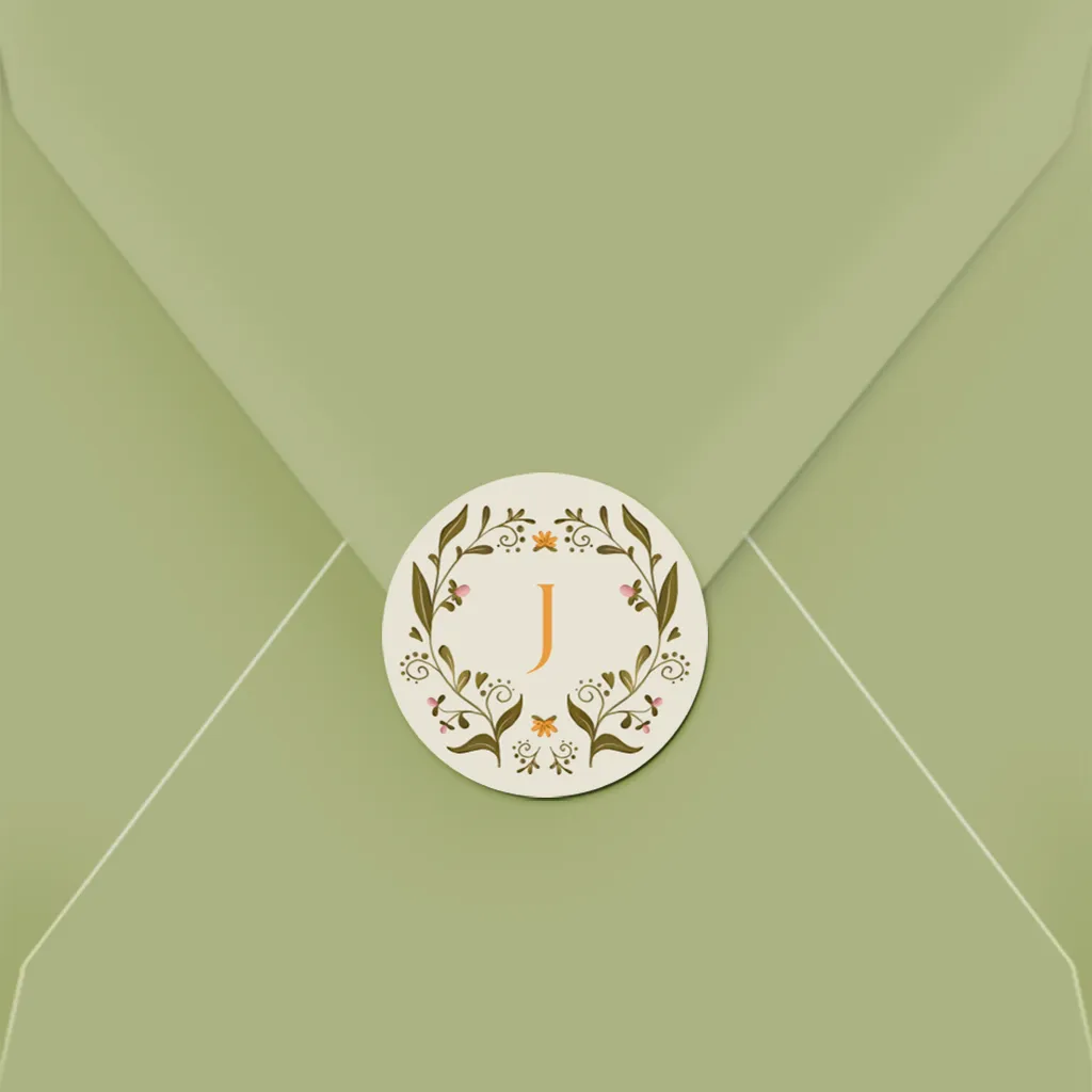 Maak een feestje van het geboortekaartje met deze bijpassende sluitsticker met daarop een initiaal en stijlvolle bloemen! Je kunt de sticker zelf bewerken in onze editor.