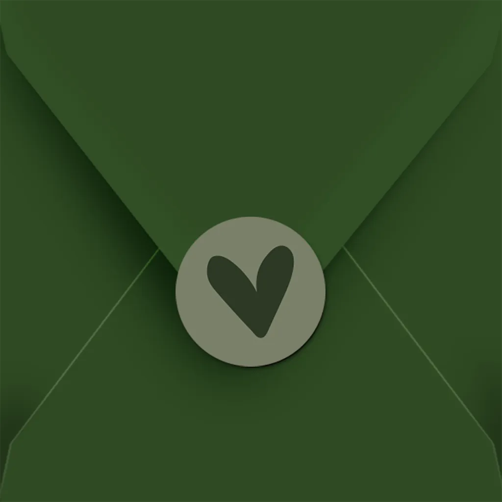 Maak een feestje van jullie geboortepost met deze sluitsticker in groen met hartje! Je kunt de sticker zelf bewerken in onze editor.