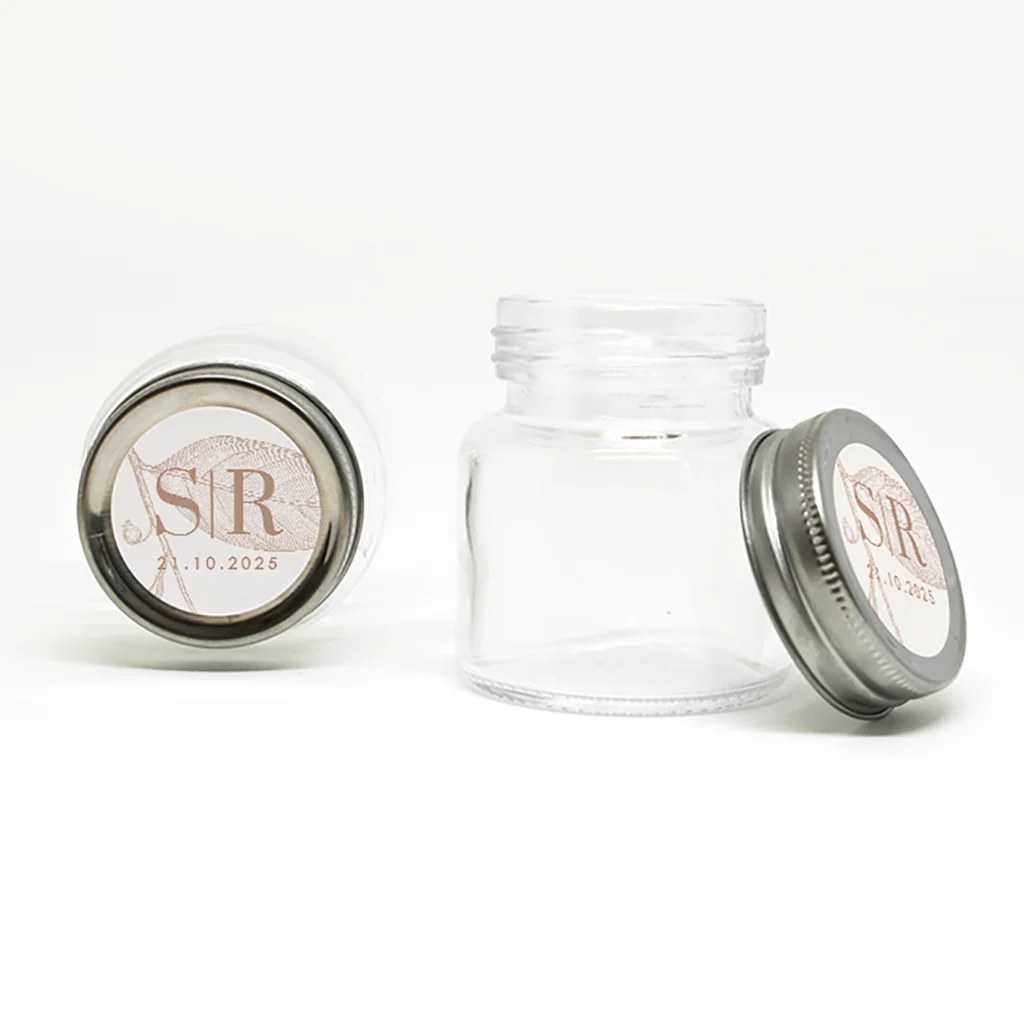 Hoe gaaf zijn stickers voor jullie trouwbedankjes in de stijl van jullie trouwkaart? Vertaal het ontwerp door naar deze speciale bedankjes en laat alles met elkaar matchen. Bewerk de ronde stickers gemakkelijk in de editor. Thuis hoef je ze enkel nog op een leuk item zoals een zeepje, kaarsje of potje te plakken.