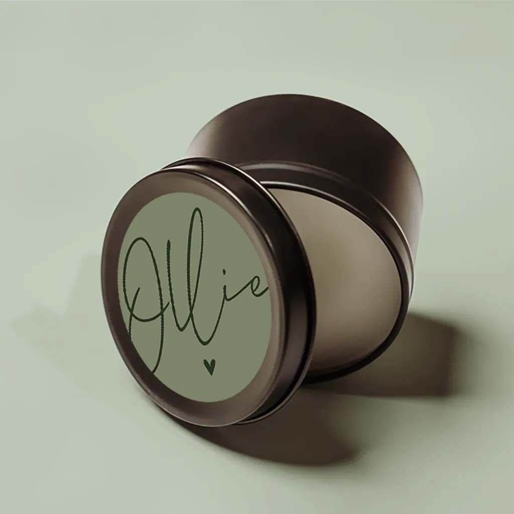 Typografische naamsticker in groen met hartje