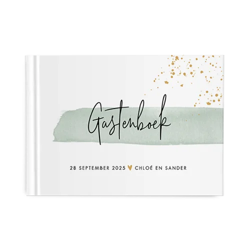 Hoe mooi is dit gastenboek met aquarel streep in stijl van jullie trouwkaart?