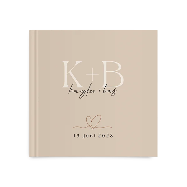 Gastenboek bruiloft stijlvol beige met initialen