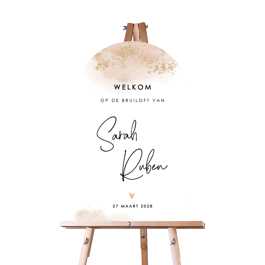 Verwelkom jullie gasten met een persoonlijk welkomstbord in boog vorm.