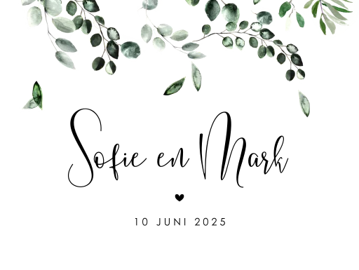 Liever een bruiloftsbord met de voorzijde van jullie trouwkaart? Dat is ook mogelijk! Je vindt het aanvraagformulier hier.