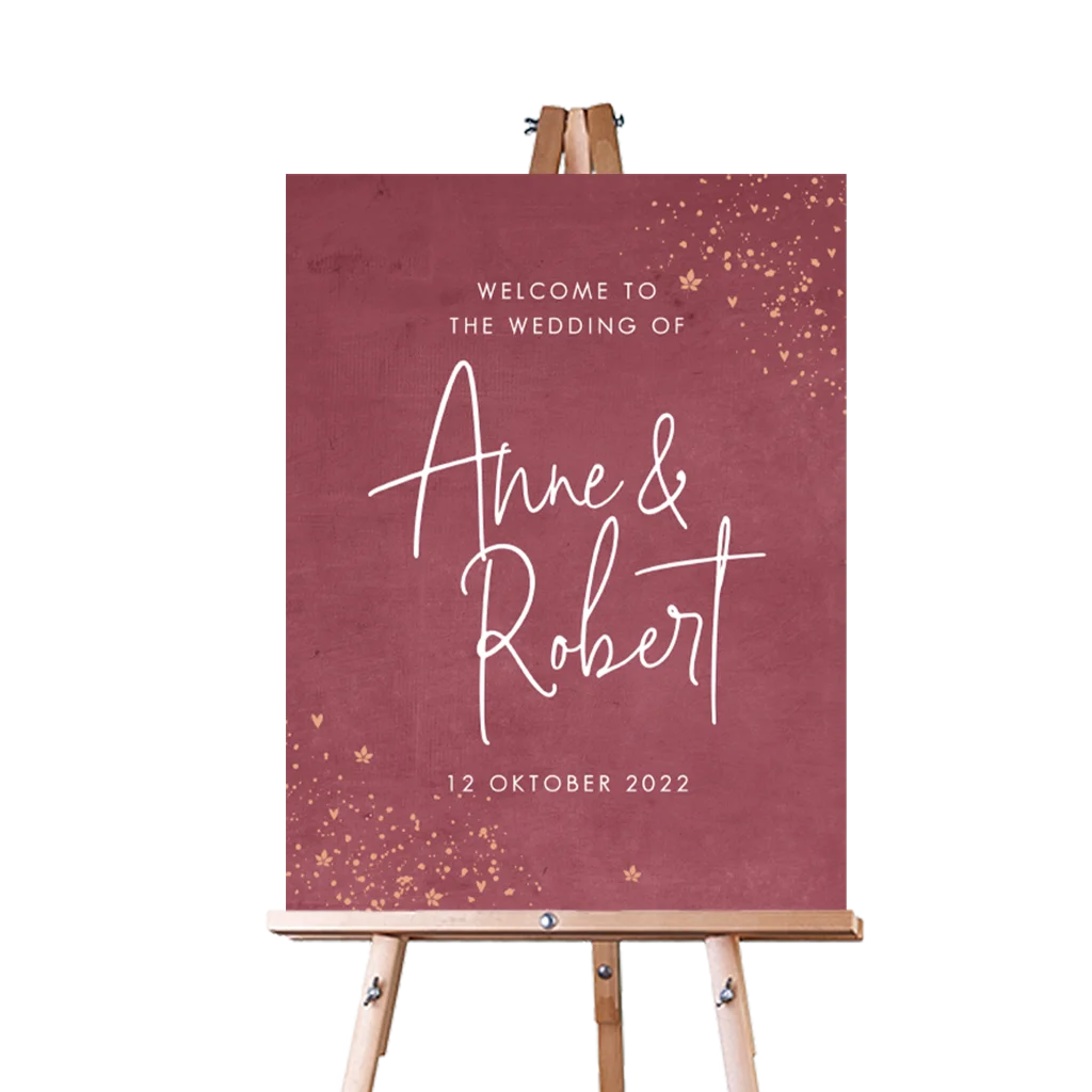 Verwelkom jullie gasten met dit romantische persoonlijk welkomstbord.