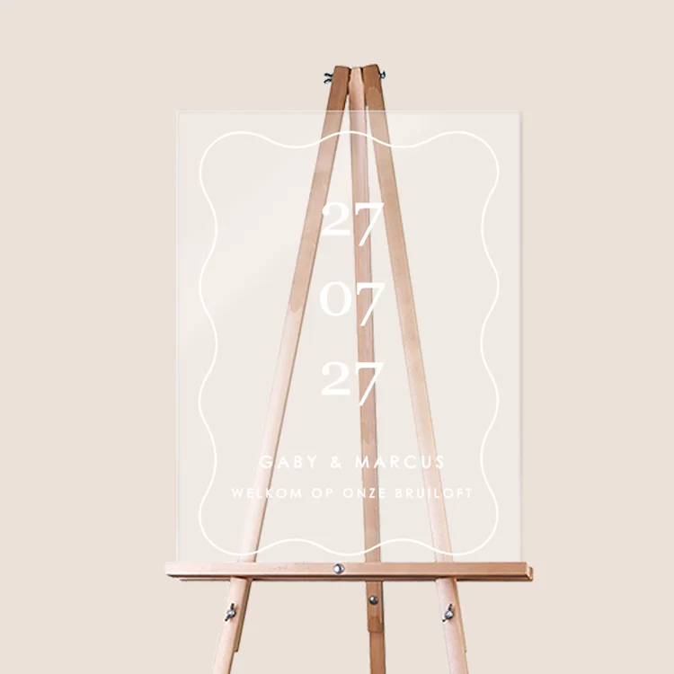 Verwelkom jullie gasten met dit prachtige welkomstbord van acryl, zo gaaf! Het golvende kader maken dit bruiloftsbord een echte eye catcher.