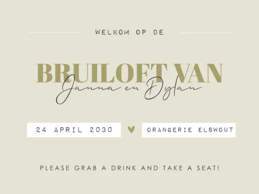 Welkomstbord bruiloft in groen met stijlvol schrift