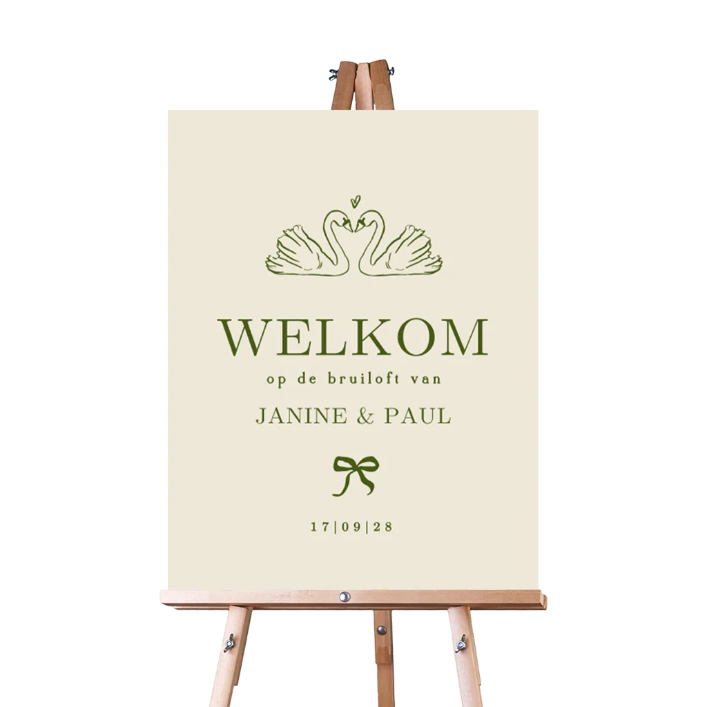 Welkomstbord bruiloft klassiek met zwanen en strik