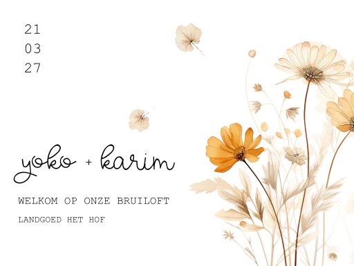 Verwelkom de gasten op jullie bruiloft met dit gave welkomstbord in dezelfde stijl als jullie trouwkaart!