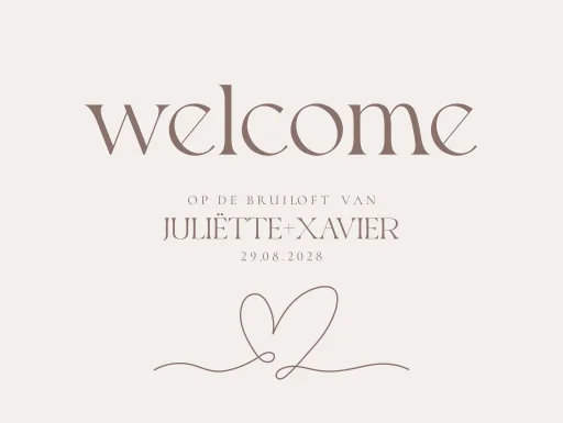 Verwelkom de gasten op jullie bruiloft met een zelf ontworpen welkomstbord! Bewerk het bord gemakkelijk naar jullie smaak in onze online editor.