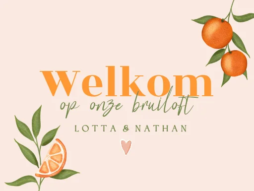 Welkomstbord bruiloft met sinaasappels