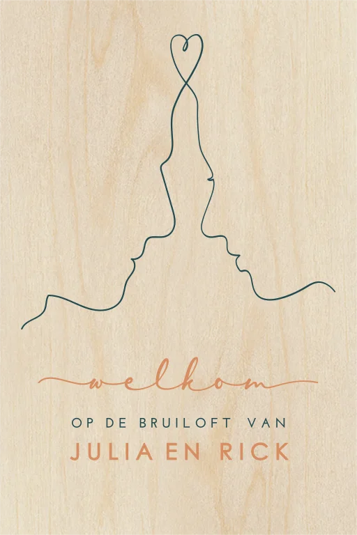 Verwelkom de gasten op jullie bruiloft met dit houten welkomstbord in dezelfde stijl als jullie trouwkaart! Pas het ontwerp naar wens aan in de online editor.
