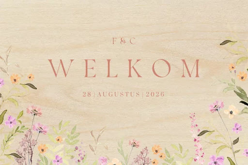 Verwelkom jullie gasten op jullie trouwdag met dit romantische houten bord in dezelfde stijl als jullie trouwkaart.