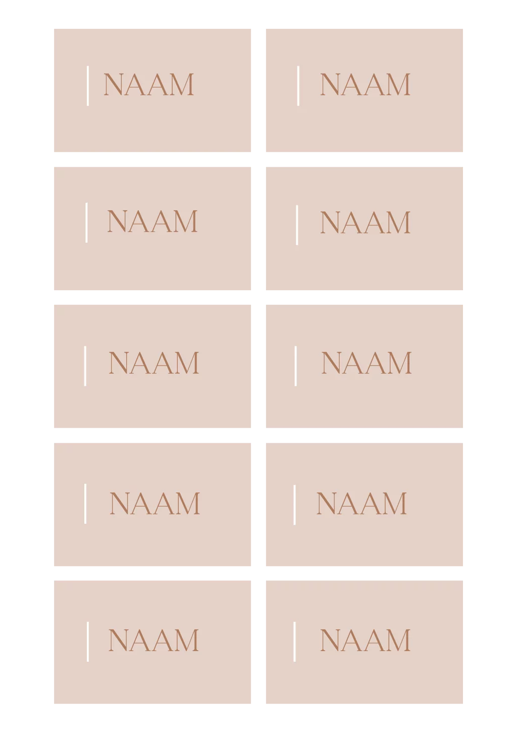 Hoe elegant zijn deze beige naamkaartjes? Maak jullie bruiloft compleet en bestel naamkaartjes in de stijl van jullie trouwkaart. Pas de namen gemakkelijk zelf aan in de editor.
