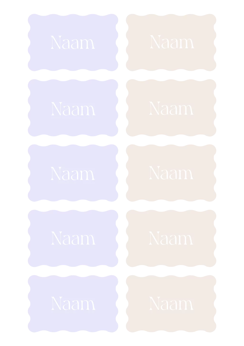 Hoe leuk zijn deze naamkaartjes in verschillende pastel kleuren? Maak jullie bruiloft compleet en bestel naamkaartjes in de stijl van jullie trouwkaart. Pas de namen gemakkelijk zelf aan in de editor.