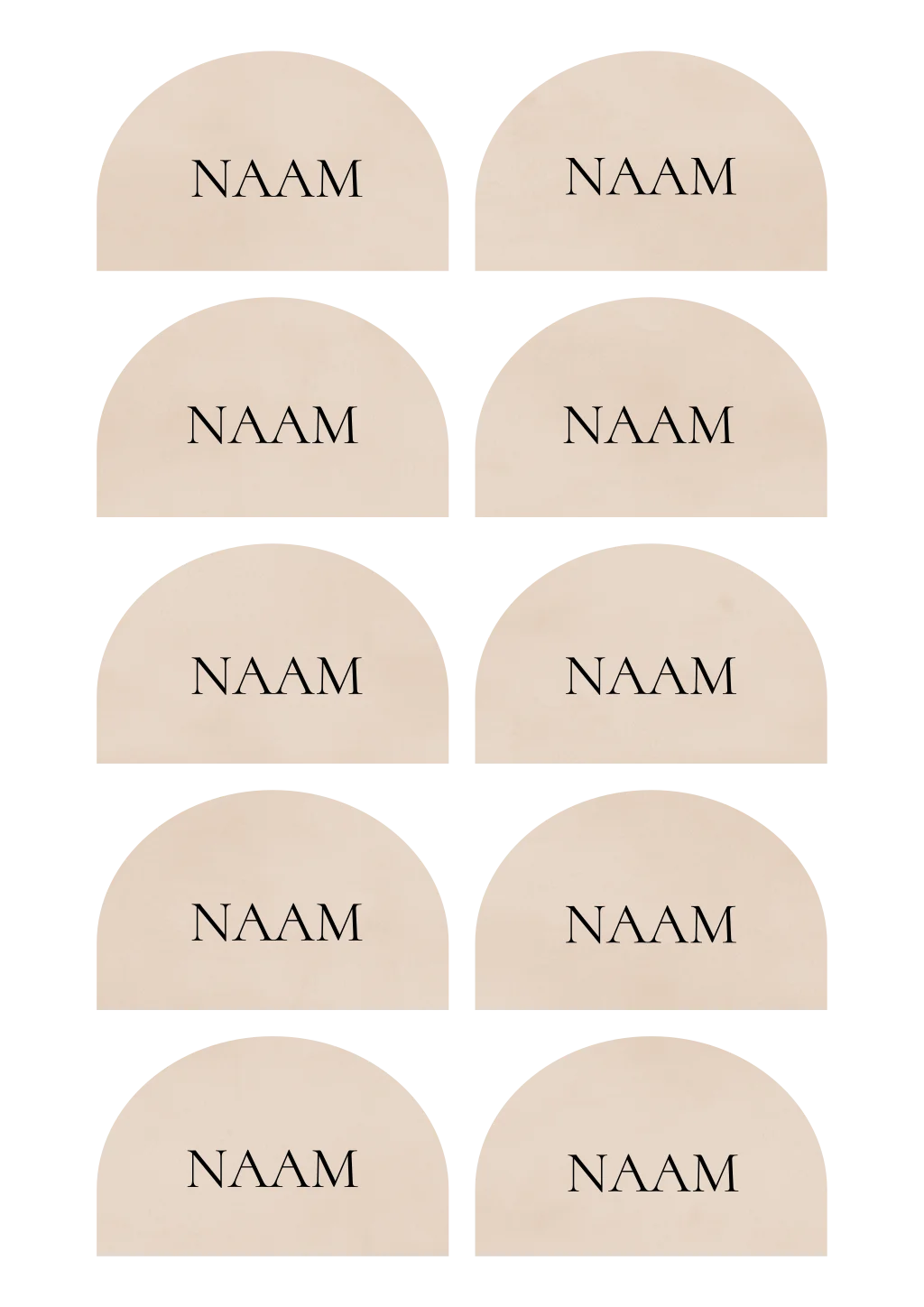 Naamkaartjes beige in boogvorm