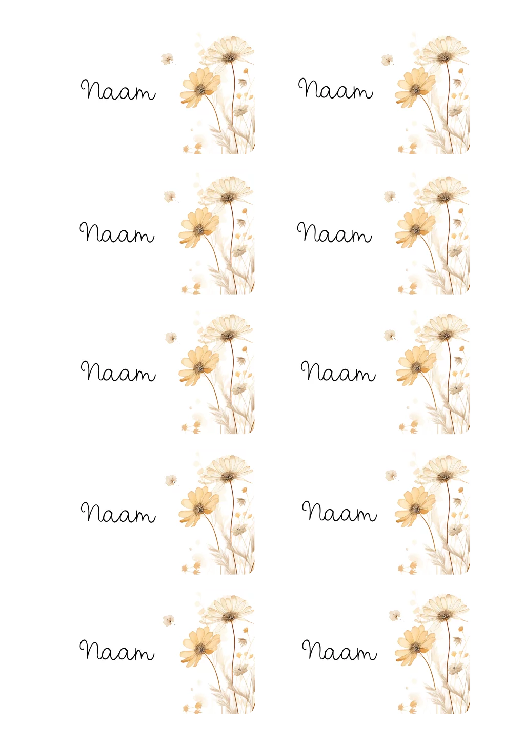 Hoe mooi zijn deze naamkaartjes met vrolijke bloemen in beige en geel? Maak jullie bruiloft compleet en bestel naamkaartjes in de stijl van jullie trouwkaart. Pas het design gemakkelijk zelf aan in de editor.