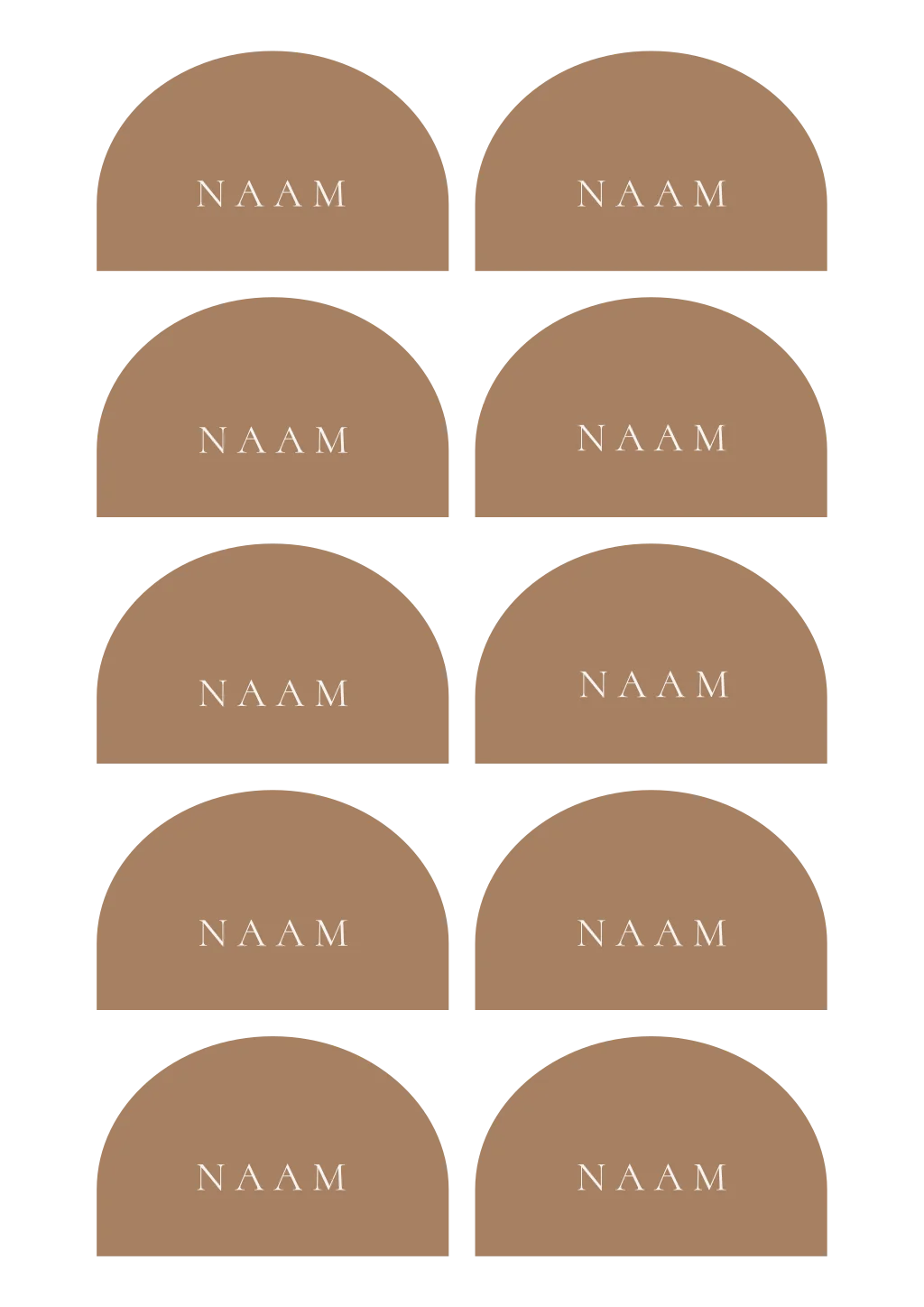 Naamkaartjes bruiloft in halve cirkels met bruine achtergrond