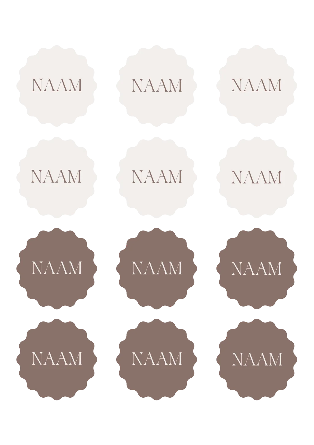 Hoe leuk zijn deze ronde naamkaartjes met kartelrand in twee verschillende kleuren? Maak jullie bruiloft compleet en bestel naamkaartjes in de stijl van jullie trouwkaart. Pas de namen gemakkelijk zelf aan in de editor.
